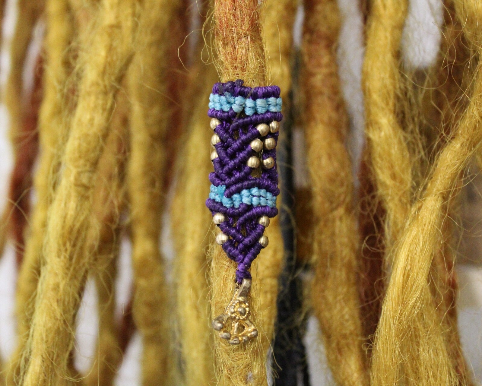 Intiassa käsityönä valmistettu Makramee-helmi, jossa messinkiriipus. Pituus n. 3cm, reiän halkaisija n. 10mm.
