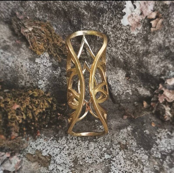 Intiassa käsityönä valmistettu, isompi, helmen tavoin käytettävä metallikoru. Pituus 3,9cm, reiän halkaisija n. 11mm. Käsityön vuoksi kuvion linjauksessa voi olla pientä vaihtelua.