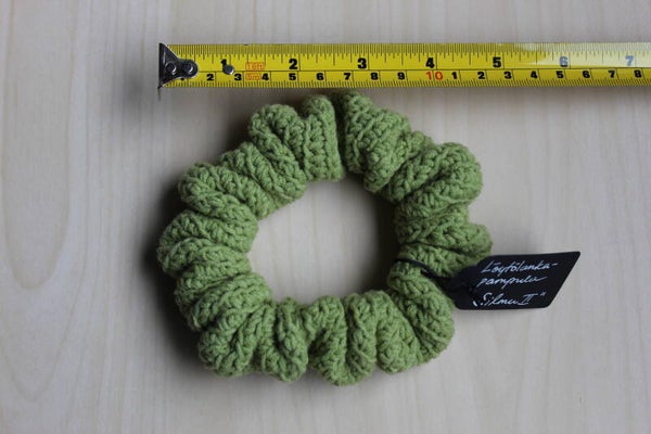 Pompulan materiaalit ovat second hand -keristä, eli mitään lankoja ei osteta uutena. Jokainen tuote on siis uniikki, sillä monesti lankaa riittää vain yhteen ponnariin <3 Isompi pompula joustaa n. 30cm.