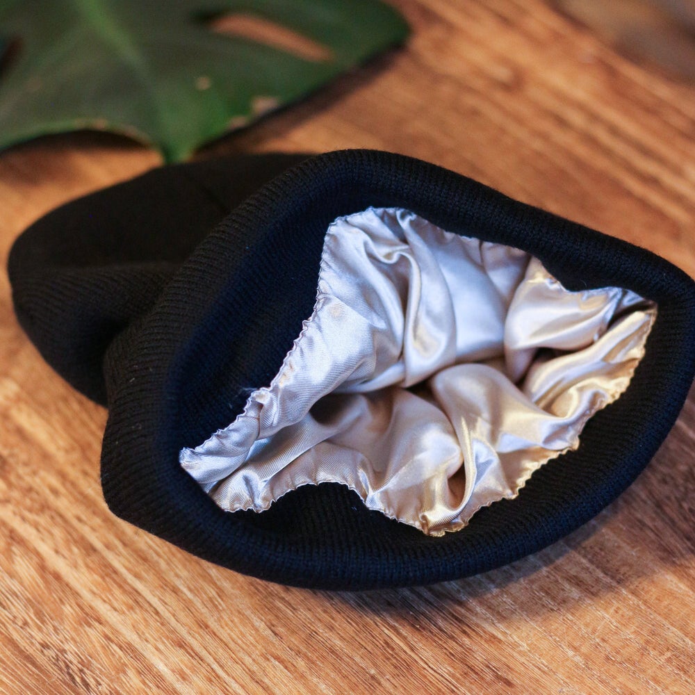 Tyylikäs, rento satiinivuorattu pipo, mikä sopii sekä takkutukalle (ei kovin paksulle), että vapaana liehuville kutreille!
