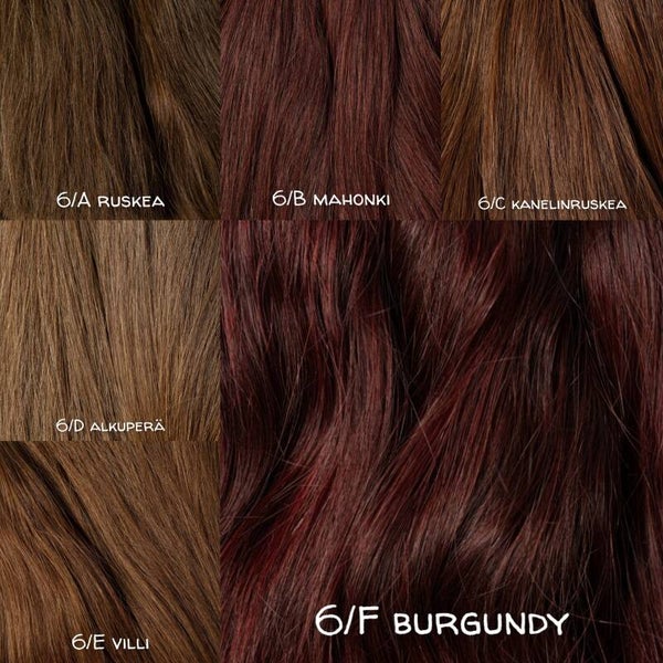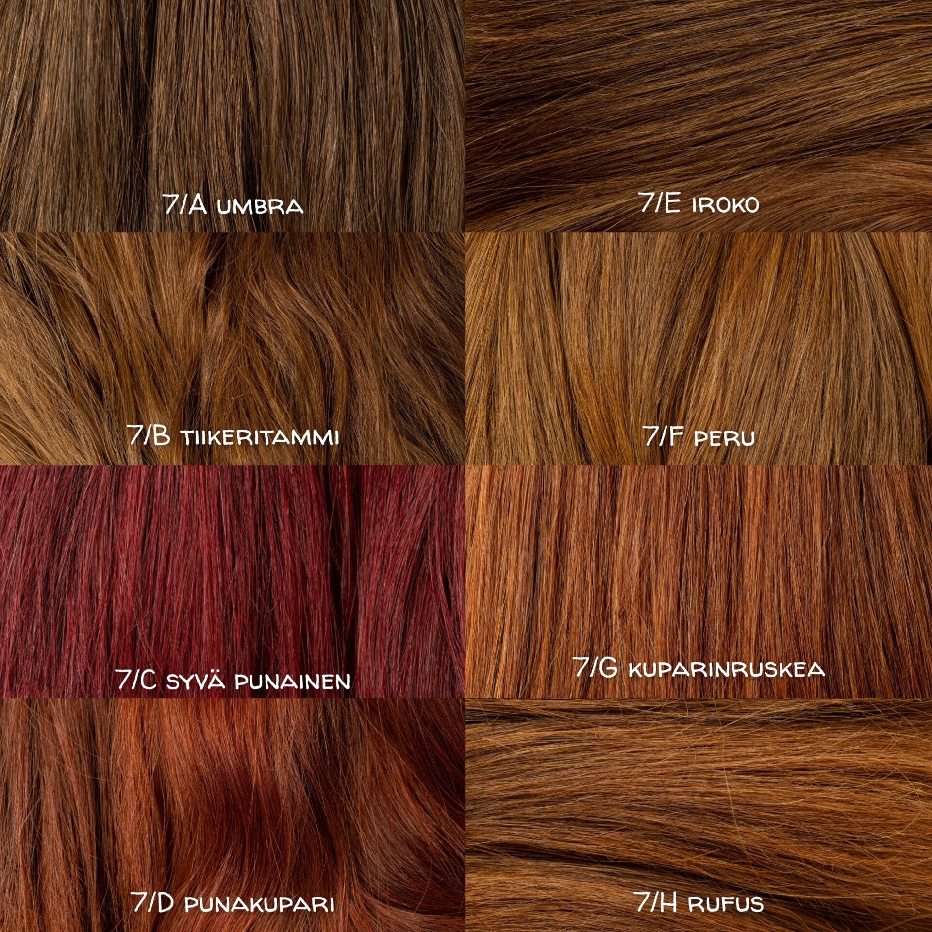 Koska kyseessä on aito hius, pidennyksiä voi värjätä (ei vaalentaa). Huomioithan, että tummasävyiset pidennykset ovat pitkäikäisempiä kuin vaaleat. Takkuihin ei käytetä hoitoaineita, mutta esim. hiusöljyt sekä etikkahuuhteet ovat oiva apu, erityisesti vaaleiden pidennysten hoitoon.