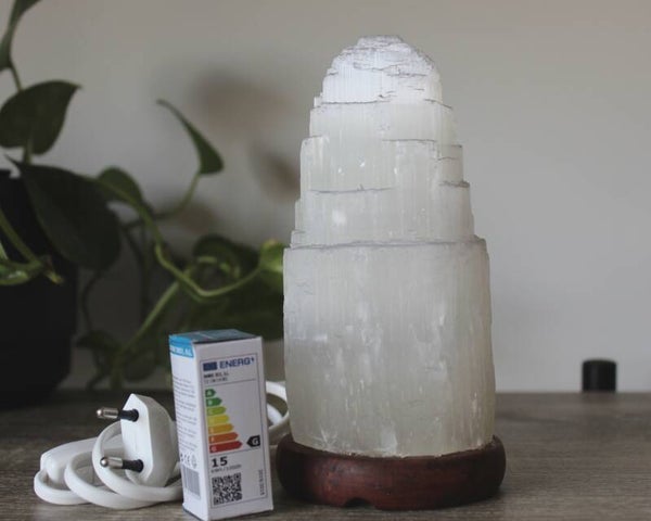 Huom! Seleniitti ei siedä vettä. Kristalli on myös hyvin huokoinen ja koostuu pienistä lasimaisista säikeistä. Käpälöi siis varovasti! Omat lamppuni imuroin varovasti pölystä harjapäällä.