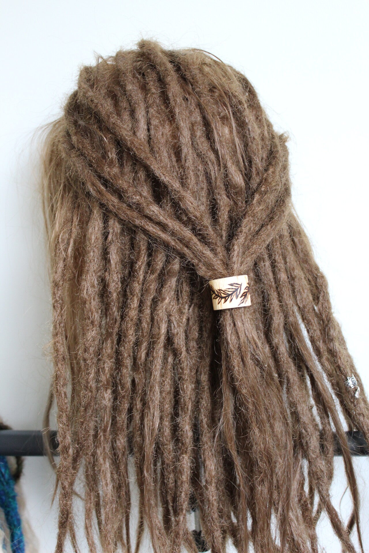 Puinen "dread cuff". Näyttävä, helppokäyttöinen koriste takkujen kiinnipitämiseen. Iso puinen rengas, jonka läpi takut vedetään. Laittotyyli tietysti täysin vapaa, kuvissa esimerkkikiinnitys (renkaan läpi vedetty 6 takkua, mahtuva määrä riippuu täysin takkujesi paksuudesta). Voidaan käyttää myös esim. Letin päässä!