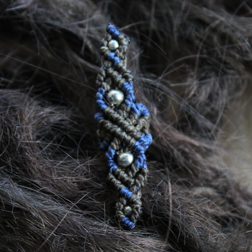 Väri tummansininen ja tumma oliivinvihreä, pituus 4,2cm, helmien väri hopea, reiän halkaisija 5-6mm.