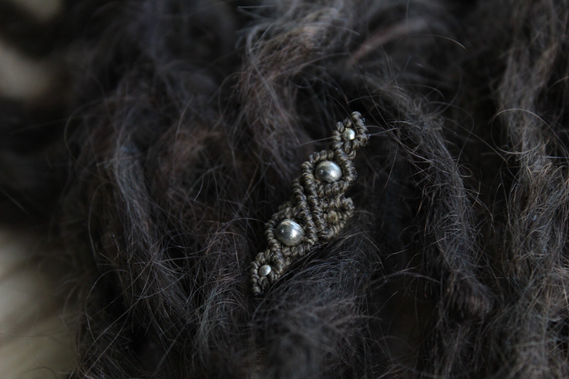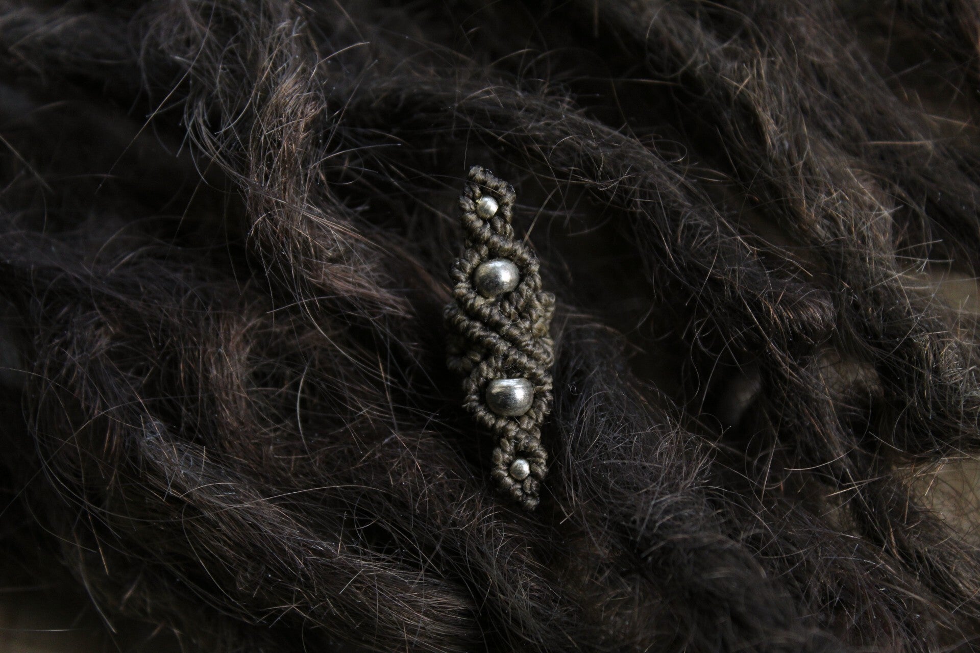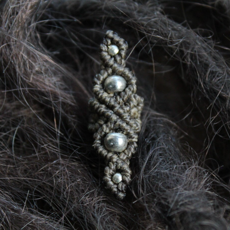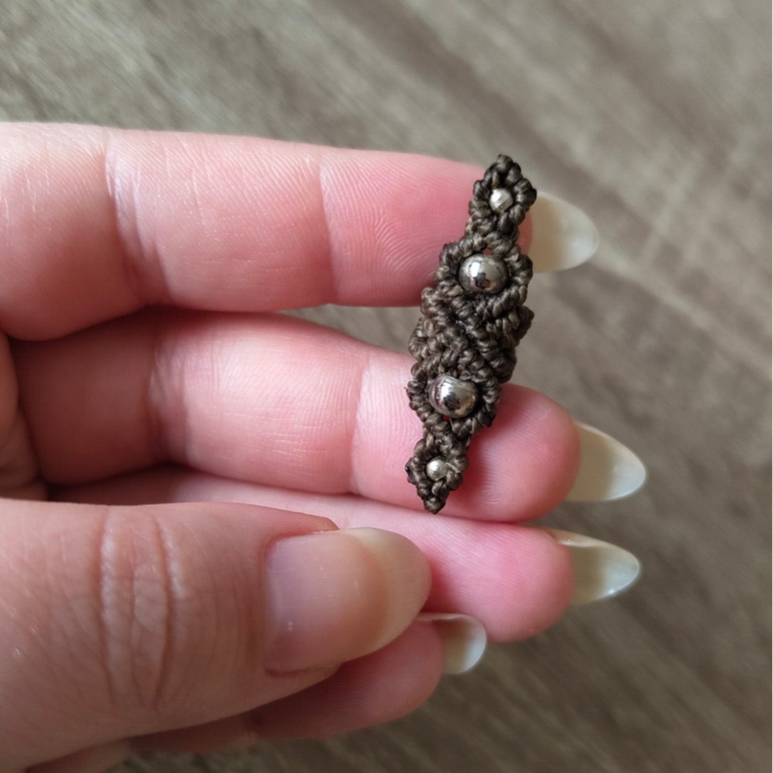 Väri tumma harmaanruskea, pituus 3,5cm, helmien väri hopea, reiän halkaisija 5-6mm.